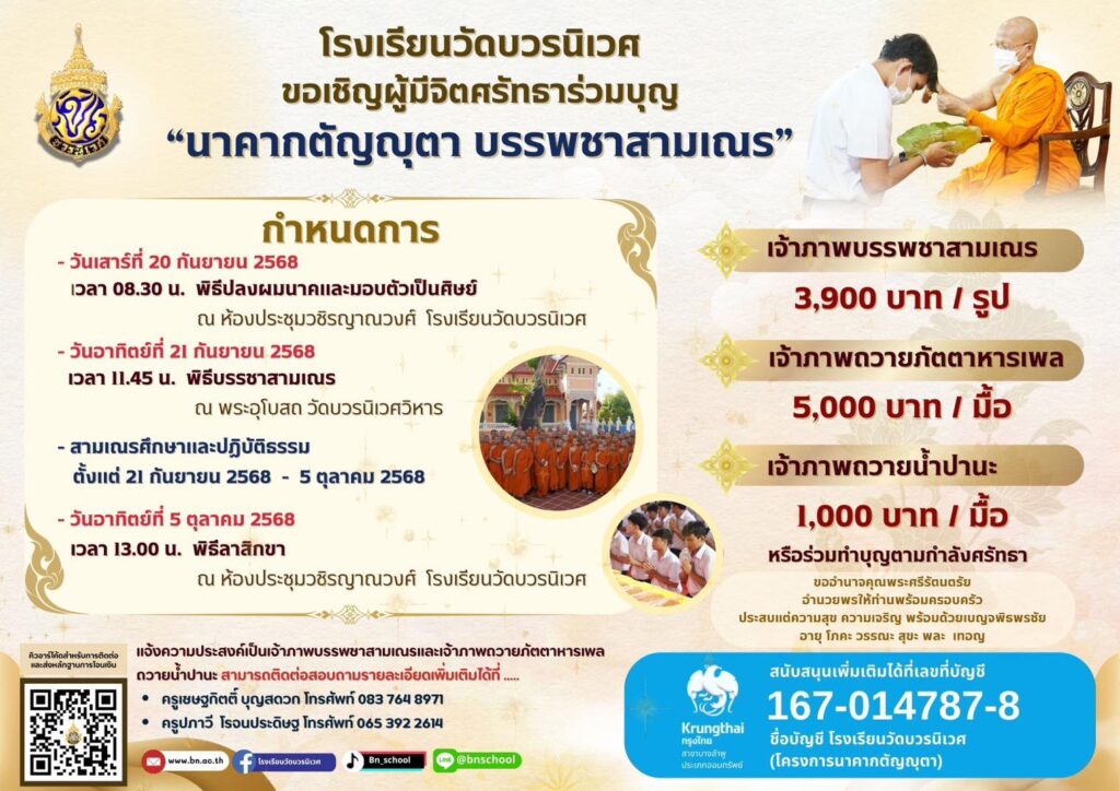 ประกาศรายชื่อนักเรียนที่มีสิทธิ์เข้ารับการคัดเลือก เพื่อรับทุนการศึกษา “ทุนวชิรญาณสังวร” (โควตาโรงเรียนวัดบวรนิเวศ) ปีการศึกษา 2568