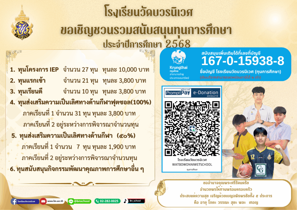 ทุน IEP ทุนเรียนดี ทุนนักกีฬา ทุนลูกแก้วนาคา ทุน 130 ปี…